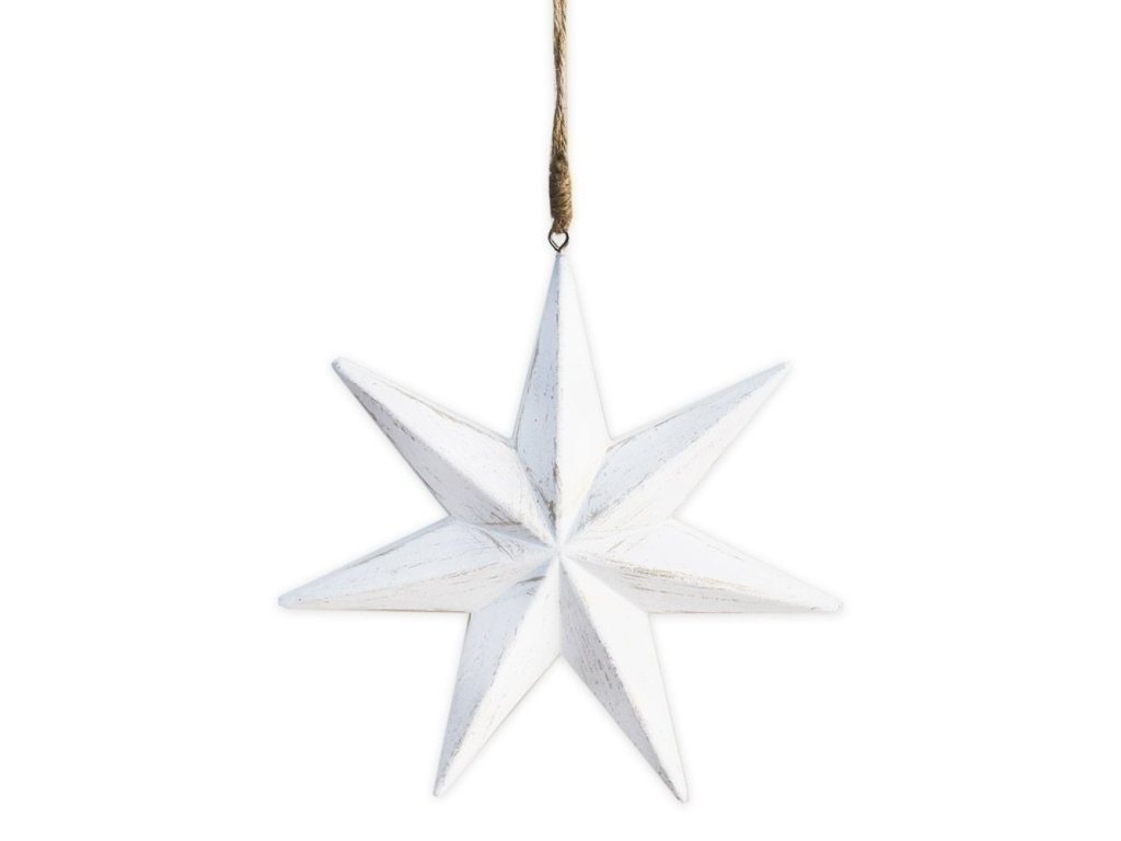 Dřevěná hvězda s jemnou bílou patinou – univerzální dekorace pro advent, Vánoce i celý rok.