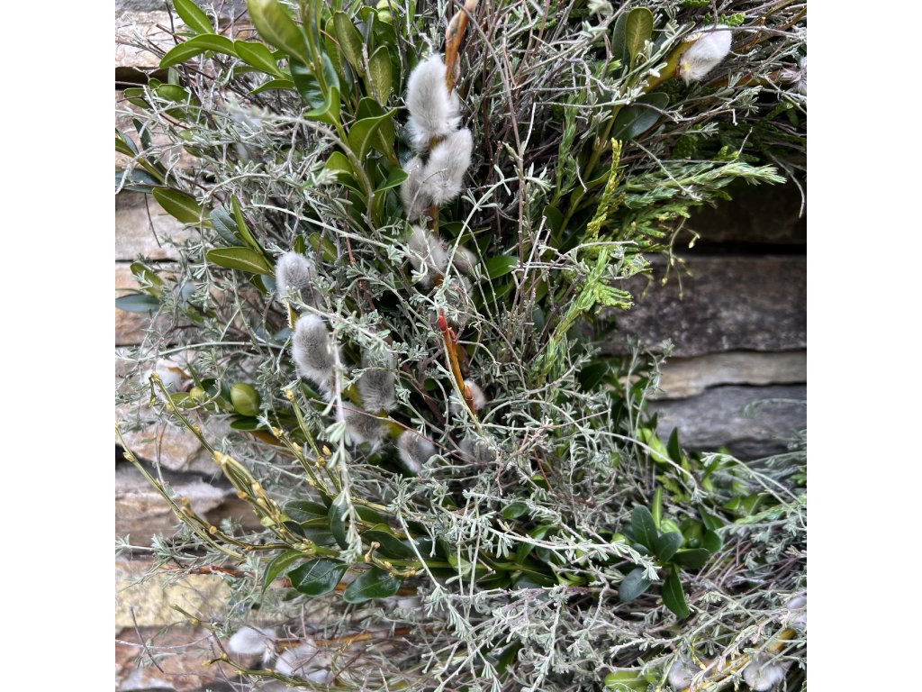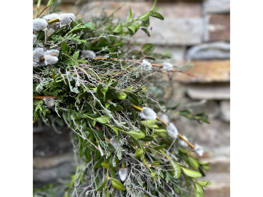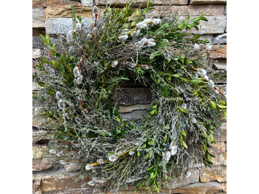 Velký věnec z přírodního materiálu doplněný o kočičky a tymián. Pozor jedná se o předobjednávku, odesíláme na konci února, potvrzením objednávky souhlasíte s podmínkami.
