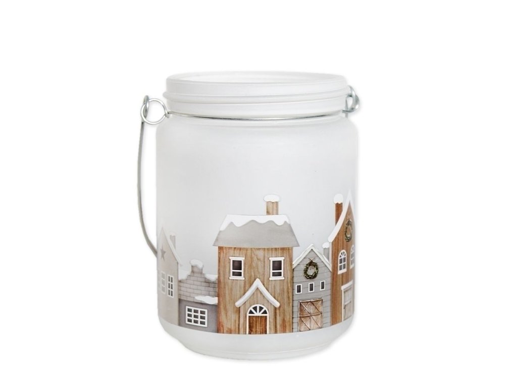 Malá skleněná lucerna v hnědé barvě – jemný zdroj světla pro romantickou nebo podzimní atmosféru.