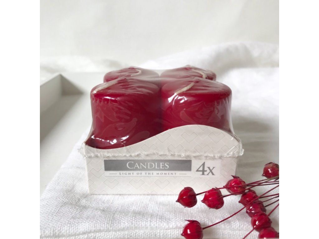 Čtyři válcové svíčky o průměru 4 cm a výšce 6 cm