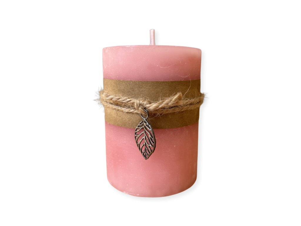 Válcová svíčka v růžové barvě s jemnou vůní sugar cookie.