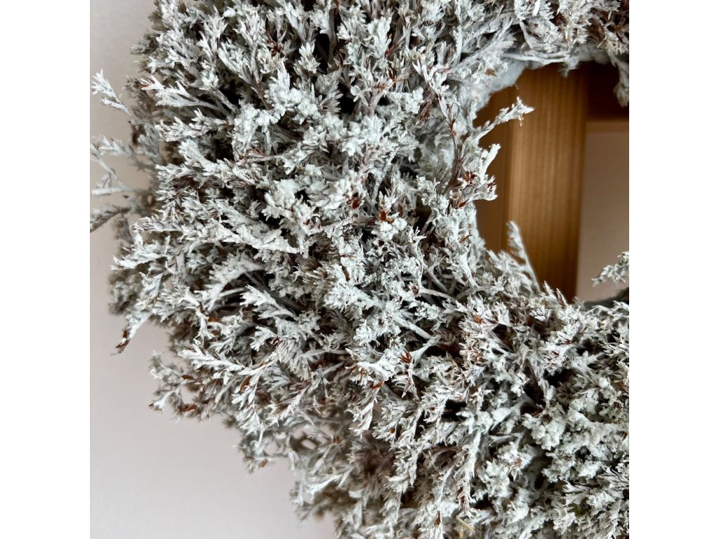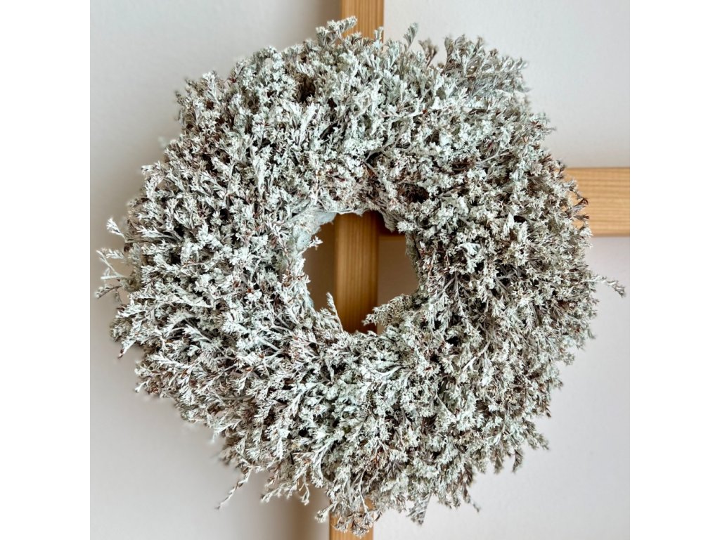 Nádherný věnec z bílé limonky dobarvený bílou barvou. Díky použitému materiálu vydrží mnoho let.