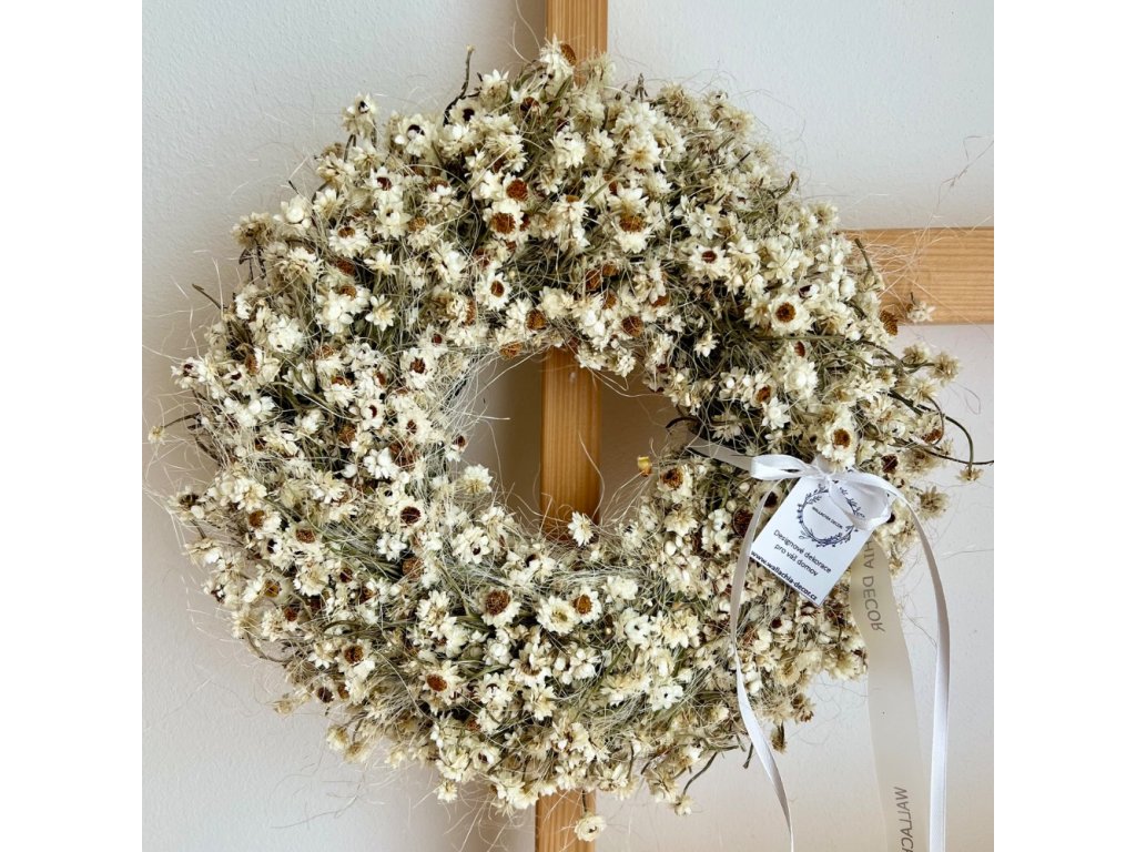 Rozkošný věnec z přírodních sušených kytiček vám vykouzlí úsměv při každém návratu domů!